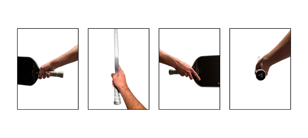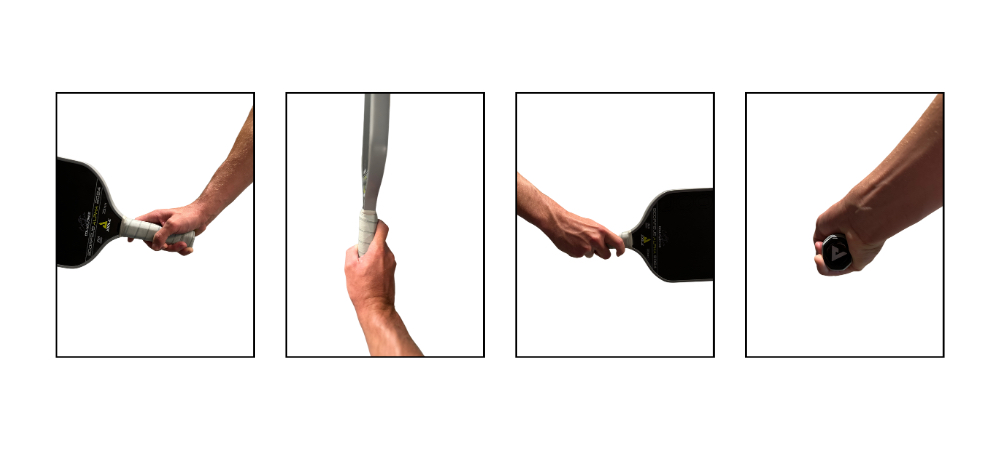 Grip Pressure – A player should adopt a relatively loose to medium tension grip. It is important to avoid an overly tight grip on the paddle, as it hinders shots that require feel and causes tension that leads to more rapid tiring of muscles, as well as to potential injury. An overly loose grip should also be avoided, as it lacks stability and does not promote connection with the paddle. The ideal grip pressure will be somewhere between these two extremes, but the exact pressure will vary from player to player. The important factor is to avoid extreme ends of the spectrum and for a player to find what is personally most comfortable.